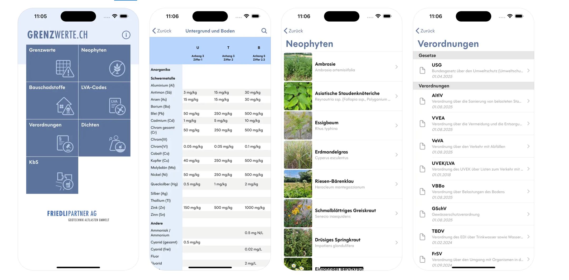 In der Abfallverordnung (VVEA) und den anderen Verordnungen im Boden-, Altlasten- und Abfallbereich gibt es eine Vielzahl von Schadstoffgrenzwerten. Um den Entsorgungsalltag zu erleichtern, hat die FRIEDLIPARTNER AG einen kleinen Helfer entwickelt: die App GRENZWERTE.CH für iPhone und Android. Die App ist auch über normale Internetbrowser zugänglich: grenzwerte.friedlipartner.ch